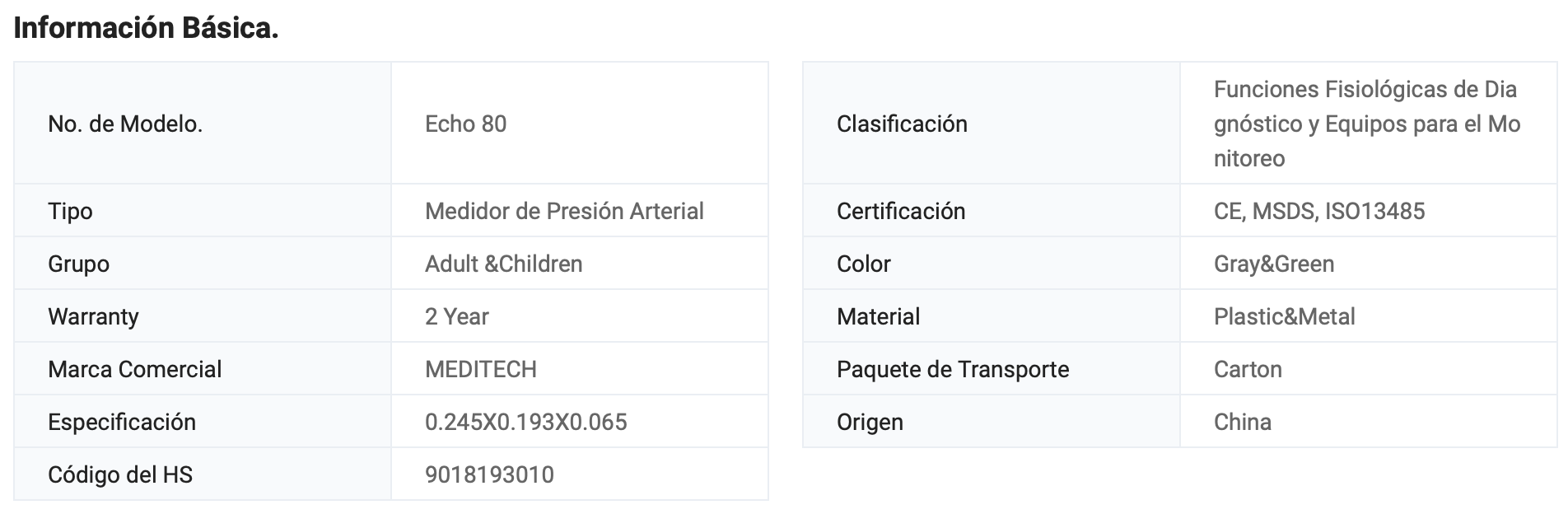 Características del producto